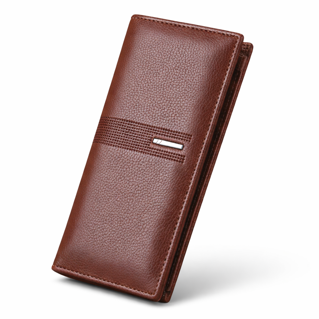 The Leather Long Wallet for Men is designed for men who prefer a slim, organized, and stylish wallet that comfortably carries cash, cards, and even a mobile phone. Crafted from high-quality PU leather, this long wallet offers a premium look with everyday practicality. Its classic brown color adds a touch of elegance, making it suitable for both casual and formal use.